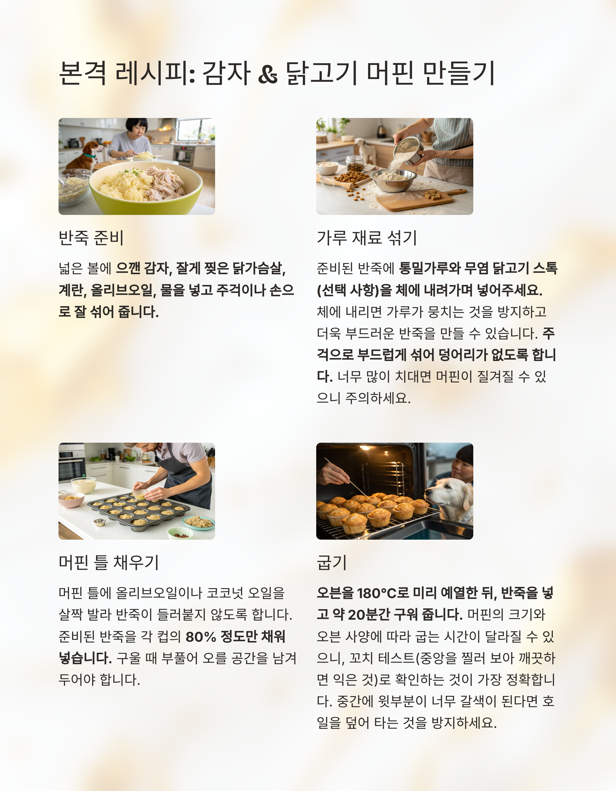 사랑하는 우리 강아지에게 특별하고 건강한 간식을 선물하고 싶다면, 홈메이드 감자 & 닭고기 머핀이 정답입니다!