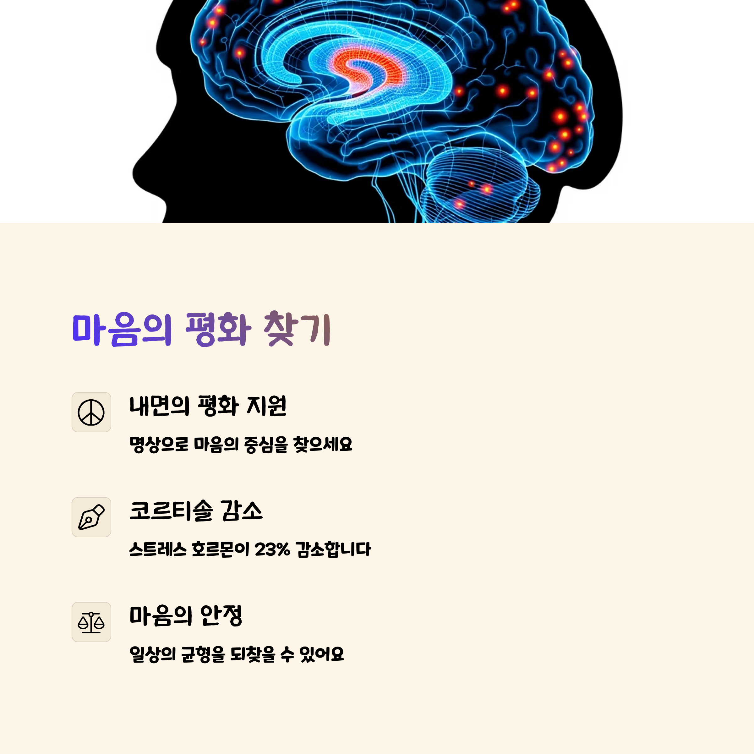 | 꾸준한 명상으로 얻는 혜택 | 스트레스를 줄여주는 명상의 효과 | 정신 건강 회복을 위한 간단한 방법 |