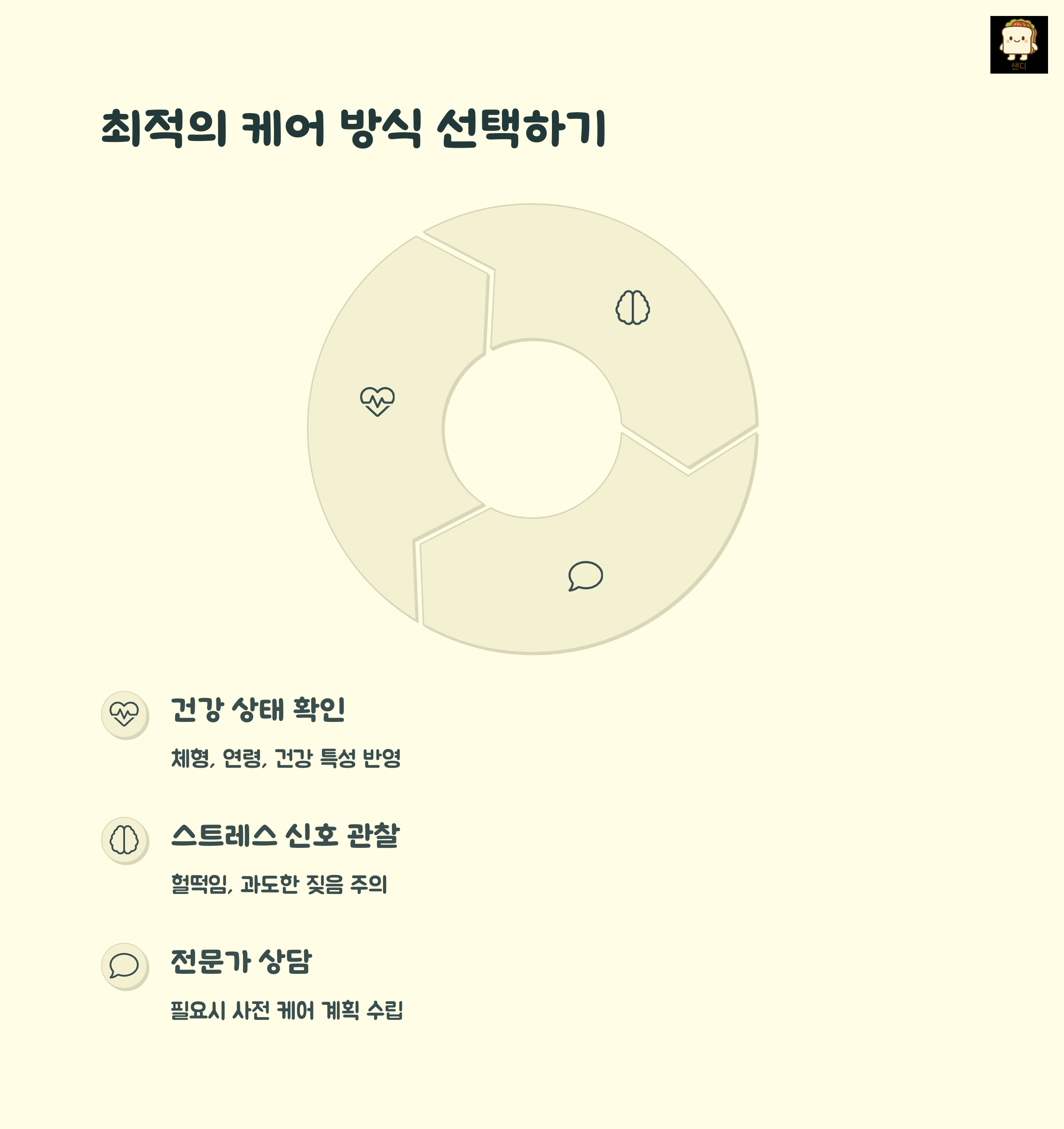 | 셀프 케어 | 전문가 케어 | 상황별 기준 |