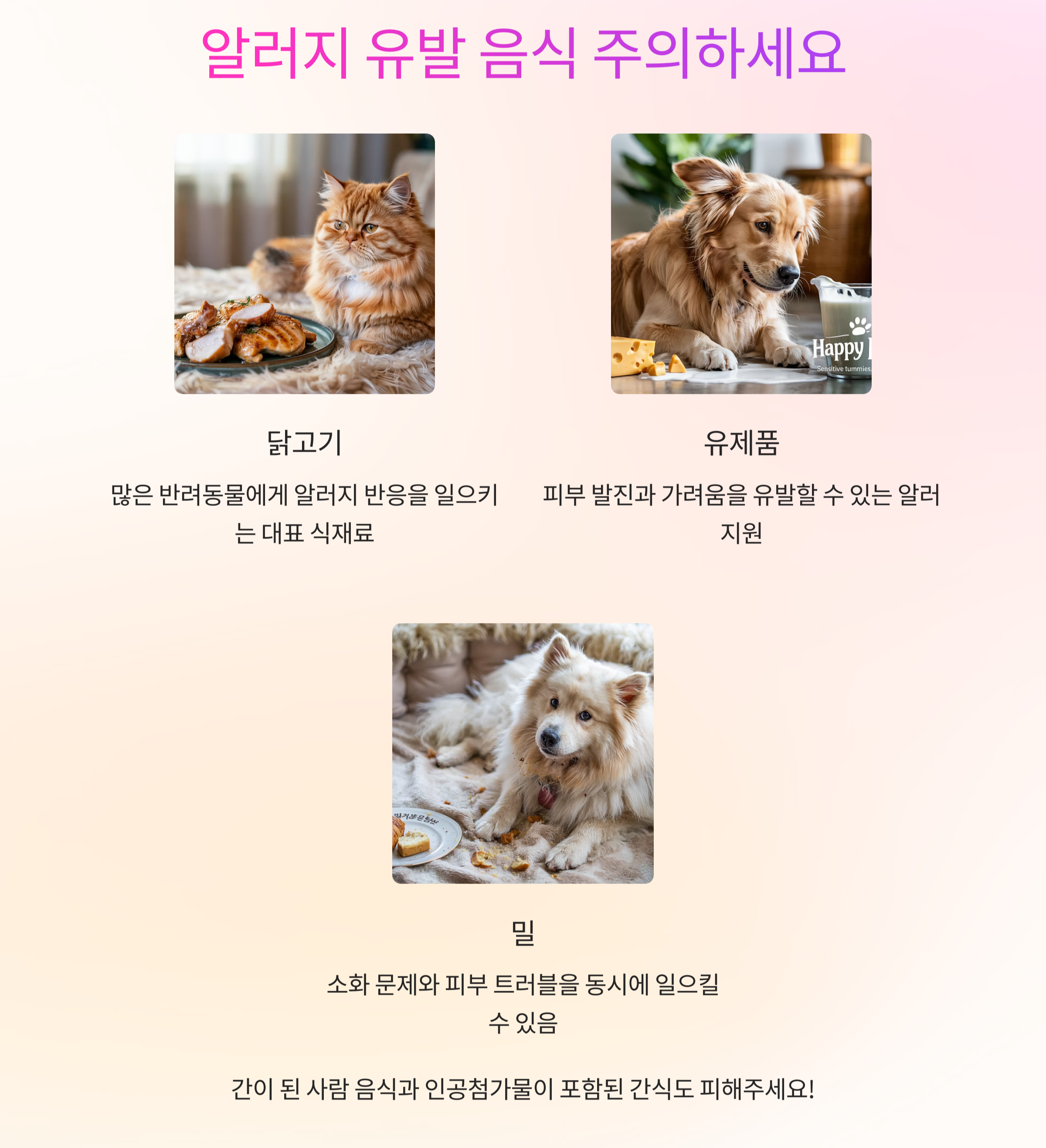 특히 알러지 체질의 반려동물이라면 먹는 것 하나하나가 피부에 직접 작용할 수 있기 때문에