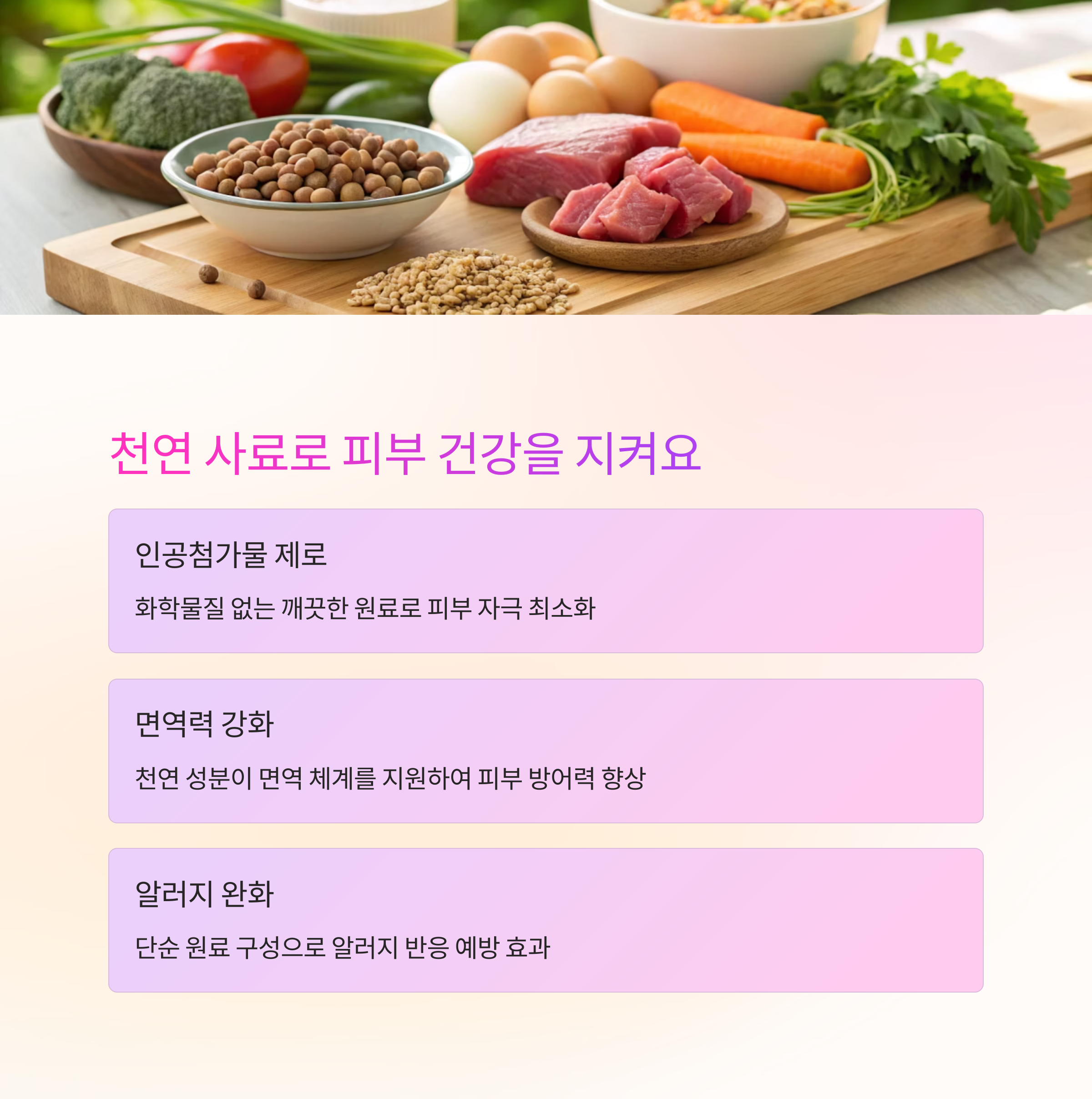 첨가물 없이 자연식으로 만든 사료는 피부 자극을 줄이고,