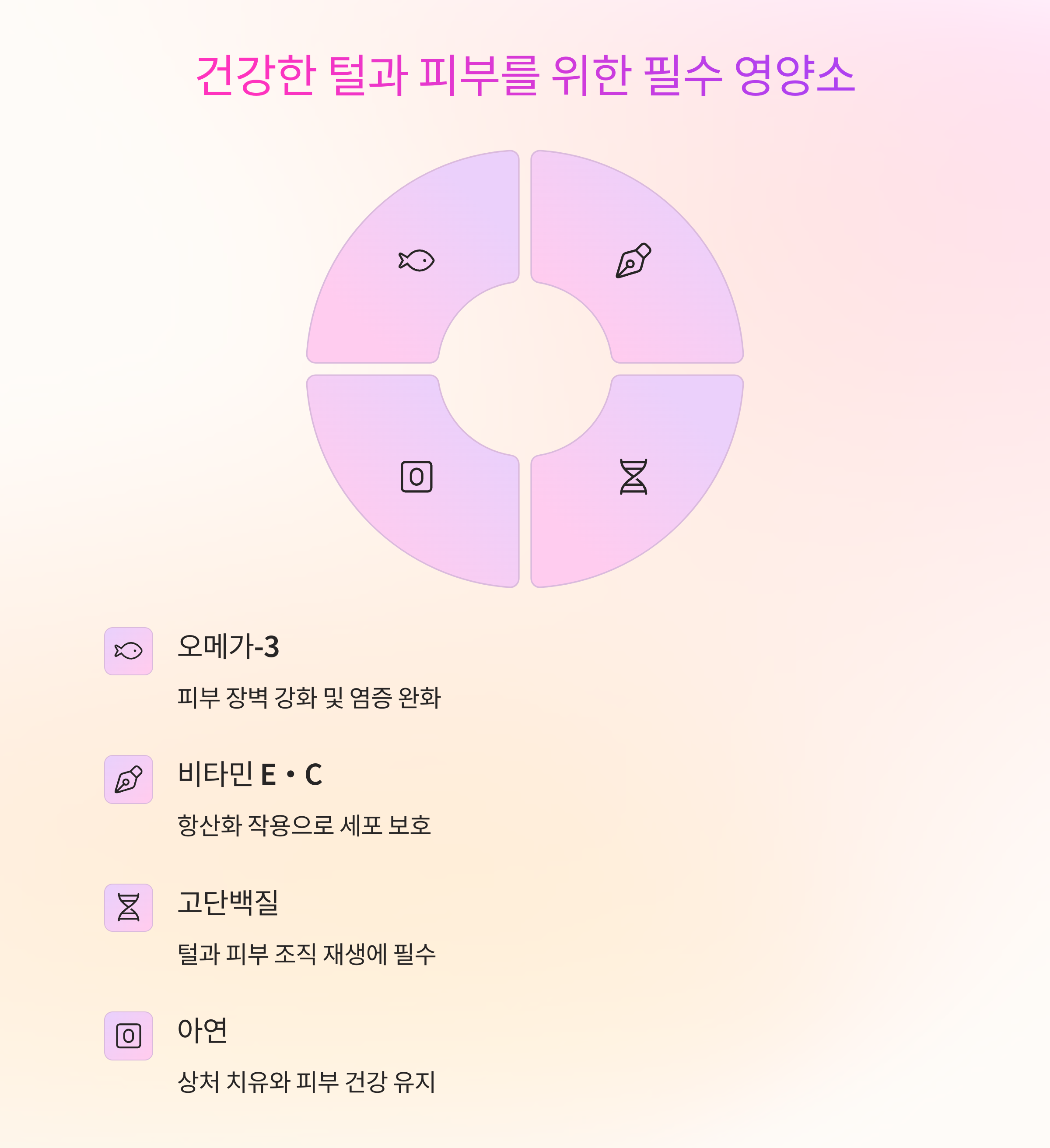 1.단백질: 피부 재생과 모질 개선에 기본이 되는 성분