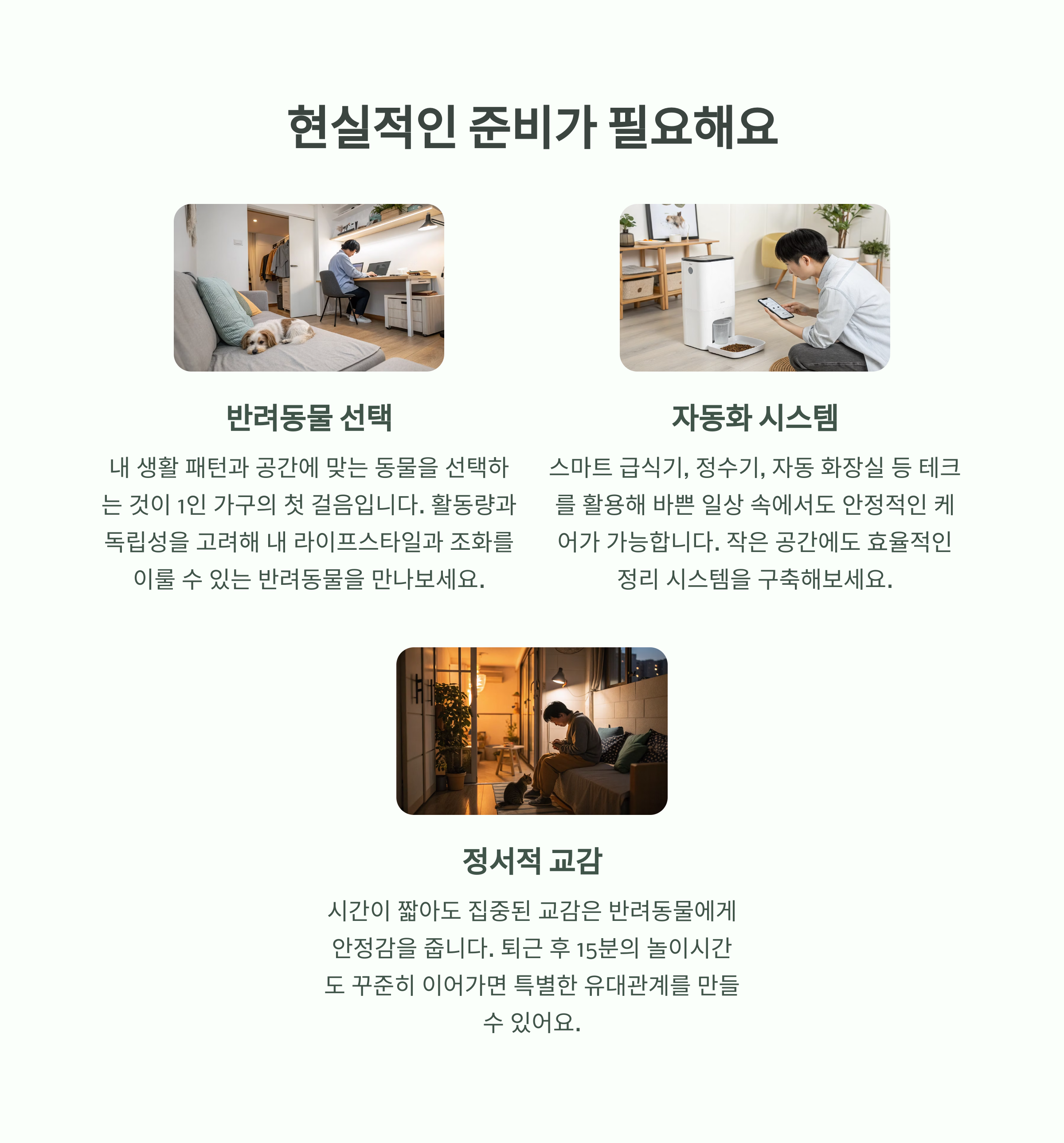 혼자 사는 환경에서 반려동물을 책임 있게 돌보는 실질적 노하우가 반드시 필요합니다.