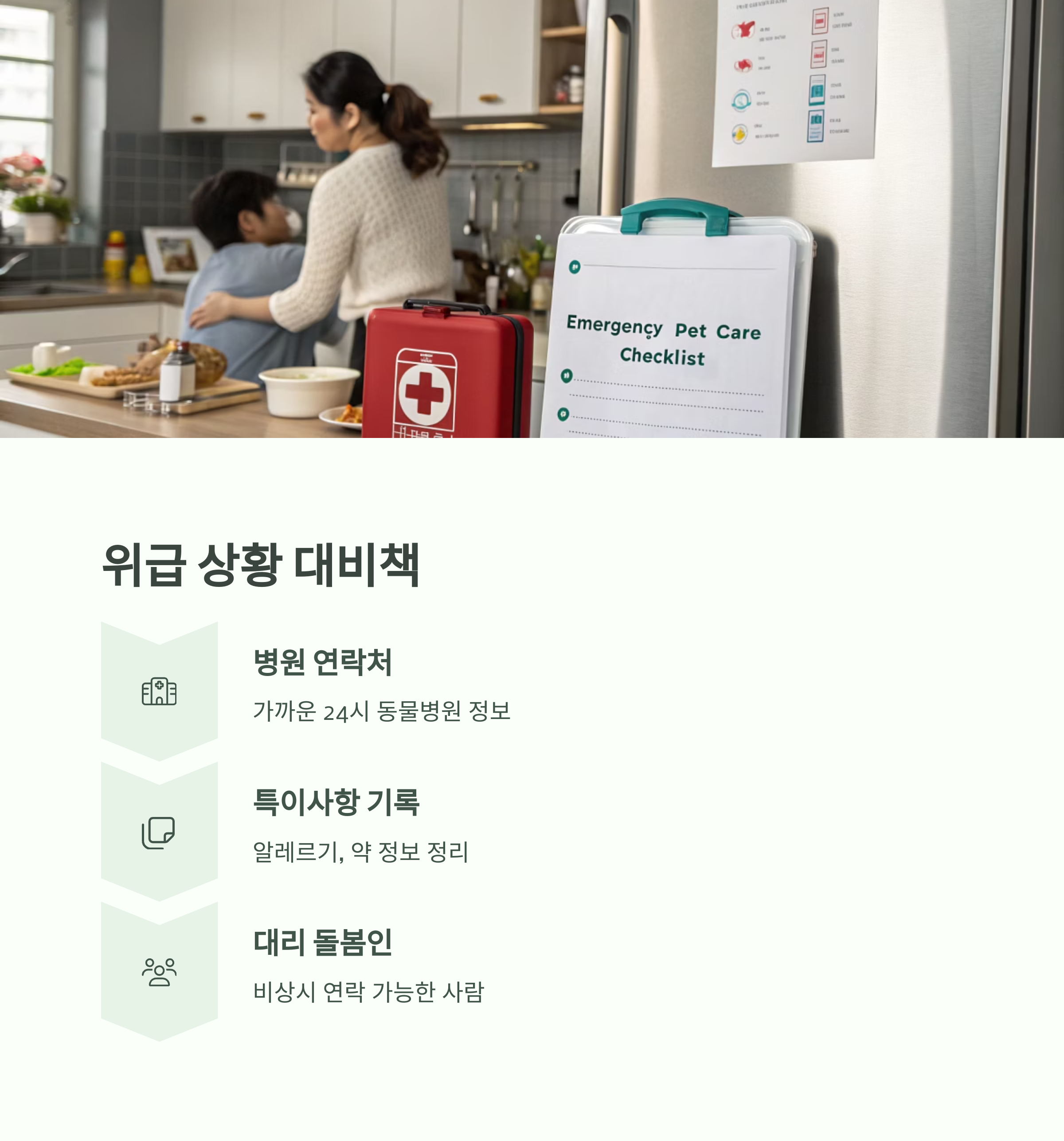 반려동물 병원 연락처, 반려동물 특이사항, 비상 대리 돌봄인 정보 등을