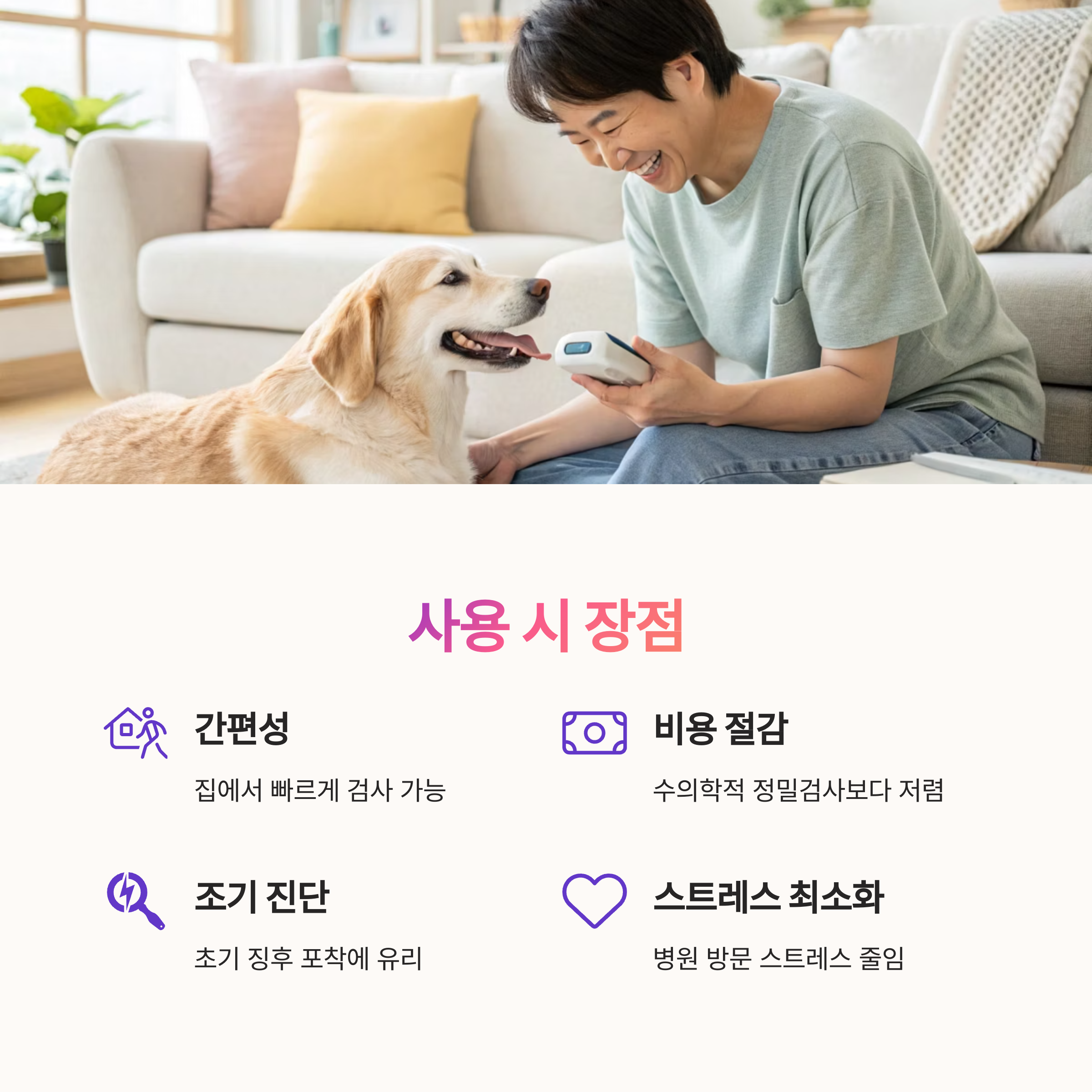 - 반려동물의 스트레스 없이 검사 가능