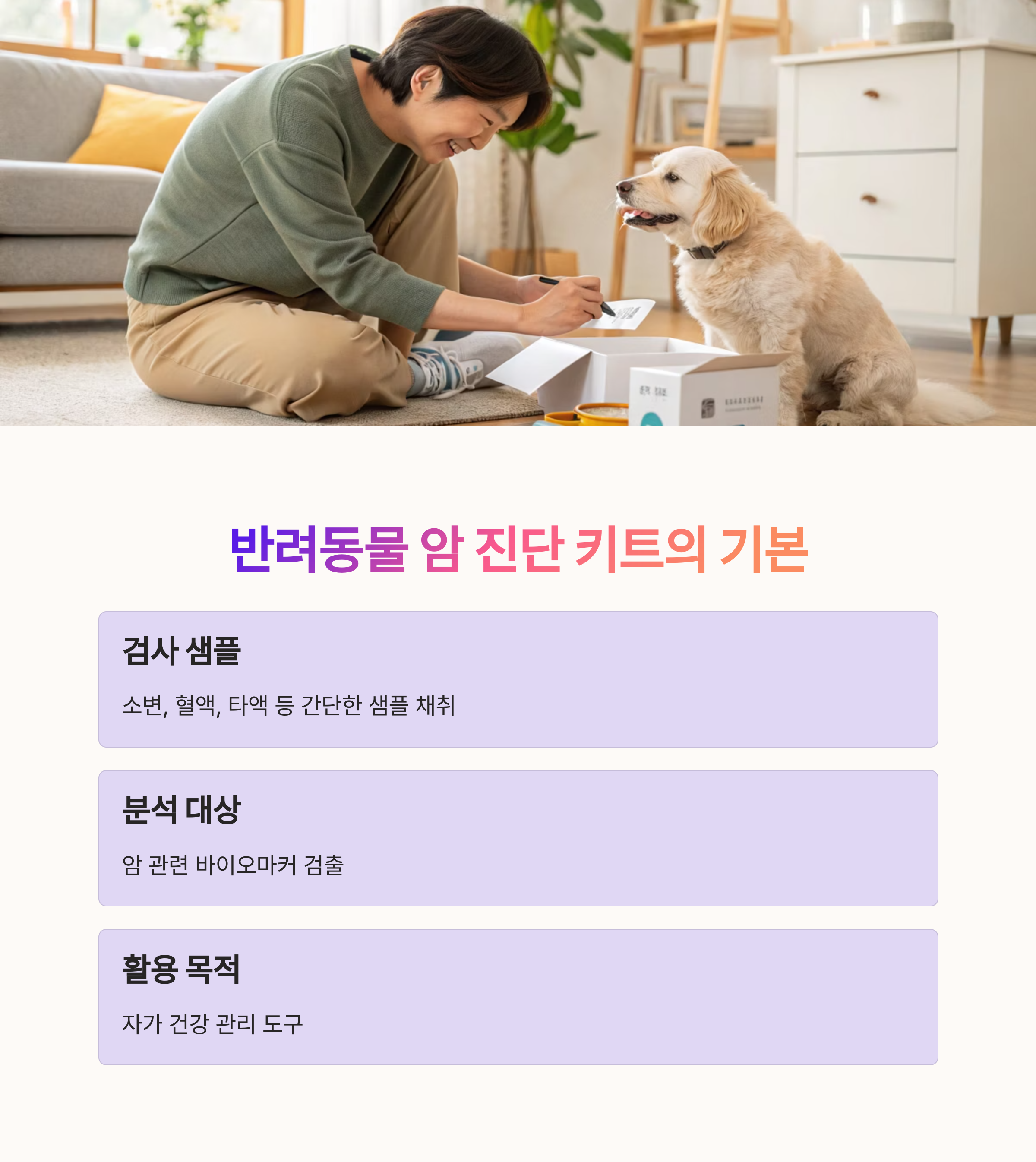 특히 **‘반려동물 암 진단 키트’**는 병원에 가지 않고