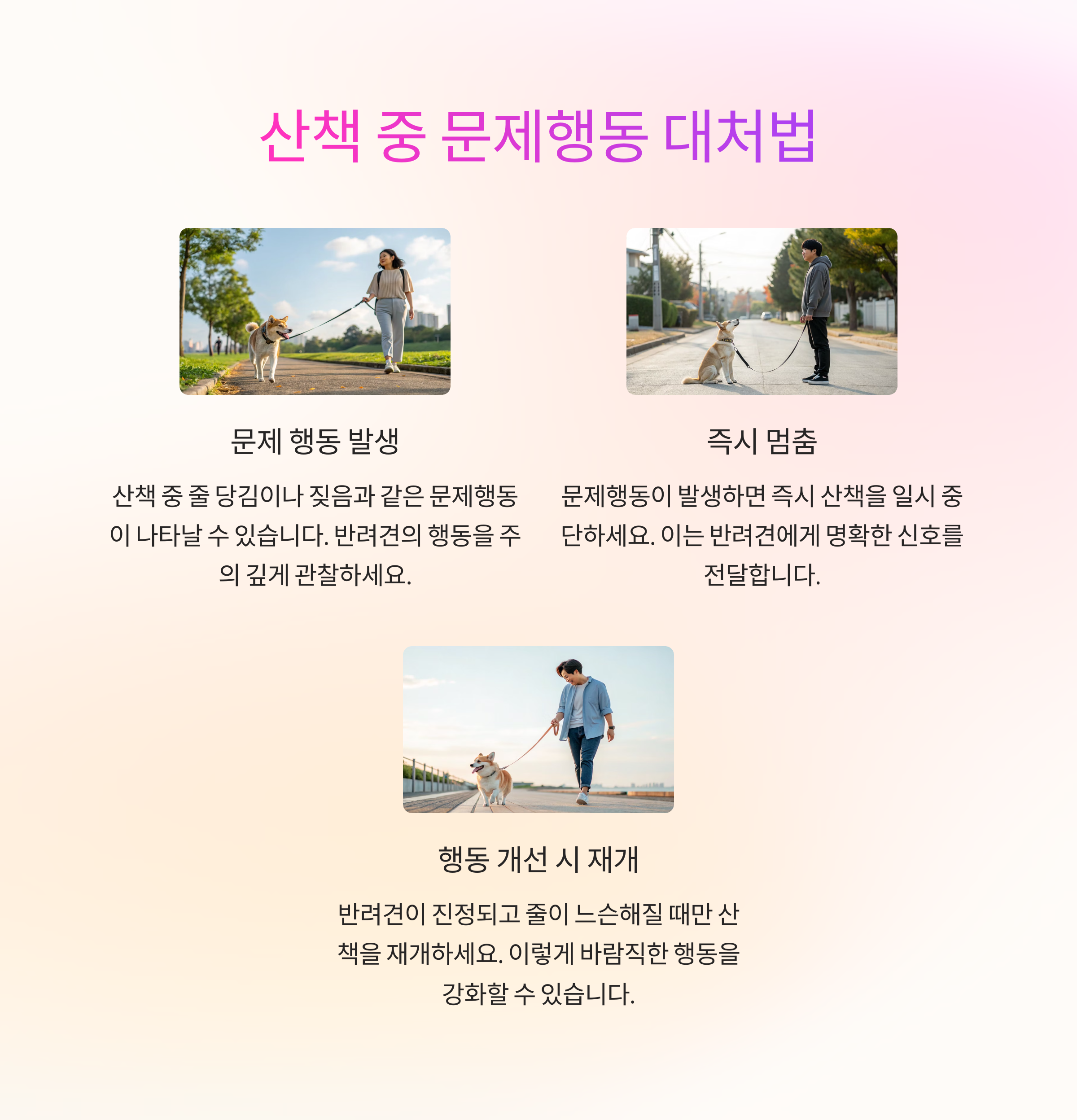 4. 산책 중 훈련은 멈춤과 재개 타이밍이 핵심